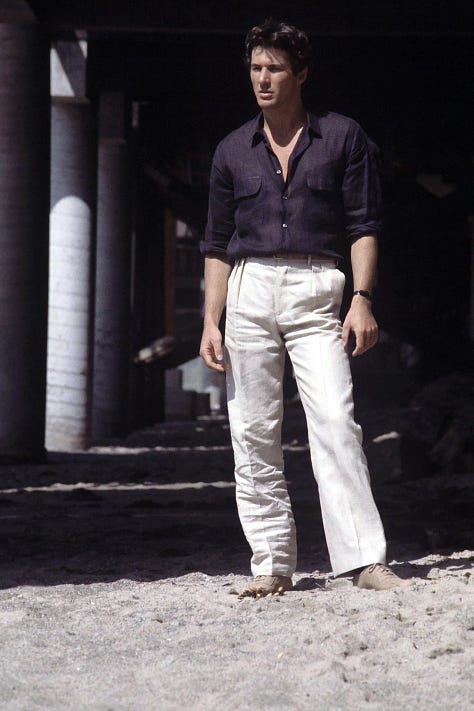Hollywood amplified his vision. In 1980, Armani dressed Richard Gere in American Gigolo, a cultural moment that made his name synonymous with modern masculinity. Soon after, Armani’s suits became the uniform of powerful men and women around the world, and his designs for Miami Vice cemented his place in pop culture. Yet through the glamour, his designs remained consistent: pared back, confident, timeless.